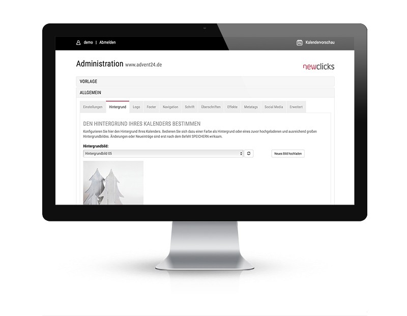 Ja, der Adventskalender kann vollständig an Ihr Corporate Design angepasst werden. Sie können eigene Farben, Logos und Hintergründe verwenden, individuelle Inhalte wie Videos, Musikstücke, Bilder und Gewinnspiele integrieren und bei Bedarf sogar eigenen CSS-Code hinterlegen, um das Design noch individueller zu gestalten.
